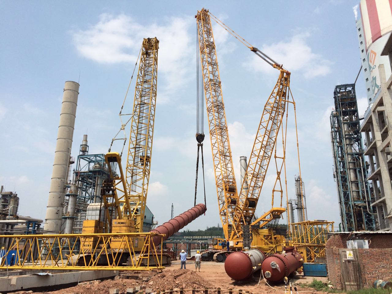 多晶硅 大型蒸發(fā)器吊裝(500T汽車吊和260T汽車吊) 多晶硅650T履帶吊 綿陽京東方 硝酸吸收塔 脫硫設(shè)備吊裝 650T和260T雙…【了解詳情】